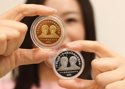 中央銀行20日舉行記者會,說明中華民國第16任總統副總統就職紀念幣,紀念金、銀幣正面主題圖案為總統當選人賴清德與副總統當選人蕭美琴肖像。