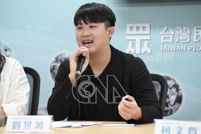 民眾黨29日舉行記者會,公布青年部主視覺「閃電小草」。青年部副主任劉昱鴻(圖)出席致詞表示未來將有2場青年論政座談會。