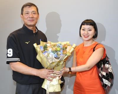 中華職棒30日在台北大巨蛋舉行新球季開幕戰,同時也是資深裁判蘇建文(左)最後一場執法,家人也到場獻花,他賽後表示,很久沒有「享受棒球」的感覺。