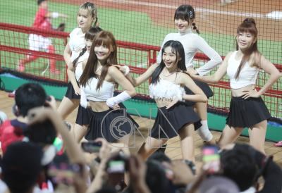 中華職棒樂天桃猿隊4日在天母棒球場擔綱主場與味全龍隊進行賽事,龍隊啦啦隊「小龍女」5局中場時以客場身分在場邊看台賣力應援。