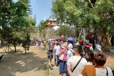 紅球台南歷史街區策展行動7日最終站在中西區古蹟台灣府城大南門登場,大批民眾排隊等待近距離與紅球拍照。
