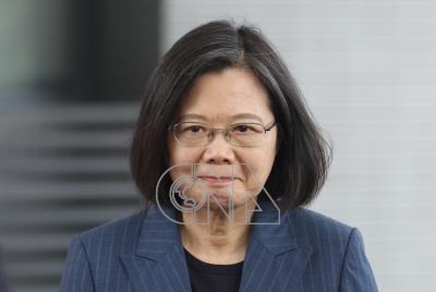 總統蔡英文(前中)15日上午主持「憲兵堅實營區完工啟用典禮」,與國安會秘書長顧立雄(前左)、國防部長邱國正(前右)等人合影。