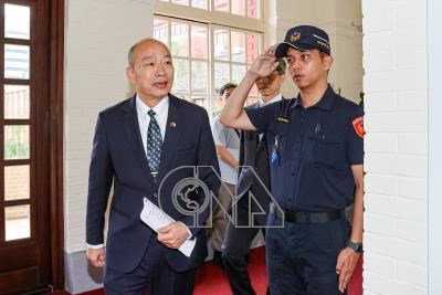 立法院長韓國瑜(左)17日上午在立法院接見「以色列國會議員訪問團」,歡迎他們來訪台灣。