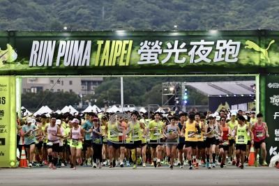 台灣知名大型夜跑賽事「PUMA NIGHT RUN 螢光夜跑」20日在台北大佳河濱公園熱鬧開跑,吸引超過6000名跑者到場參與。