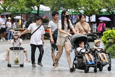 中央氣象署28日表示,受鋒面影響,白天降雨機率較高,各地都會有短暫陣雨或雷雨,建議民眾外出攜帶雨具。圖為民眾帶小朋友到台北市立動物園遊玩,享受假日親子時光。