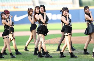 中華職棒例行賽28日下午在新莊棒球場舉行,由富邦悍將對決味全龍,啦啦隊熱場表演,炒熱氣氛。