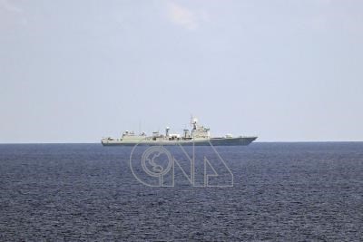 美菲兩國29日在南海進行實彈射擊演習,中國海軍舷號167的飛彈驅逐艦「深圳號」出現跟監。中央社特約記者Edward Bungubung攝 113年4月29日