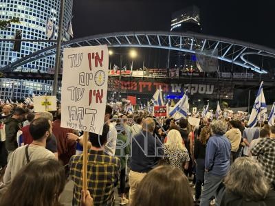 特拉維夫市中心以色列國防部相鄰的比金(Menachem Begin)大道,每週六晚上有成千上萬民眾聚集抗議示威,以支持人質家屬和譴責尼坦雅胡政府。