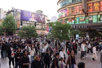 「五一」假期共5天,上海是知名的購物區南京路步行街,假期首日即迎來人潮。