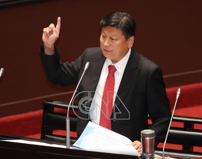 立法院會31日邀請行政院長卓榮泰率各部會首長列席進行施政方針報告並備詢,圖為國民黨立法院黨團總召傅崐萁上台質詢。