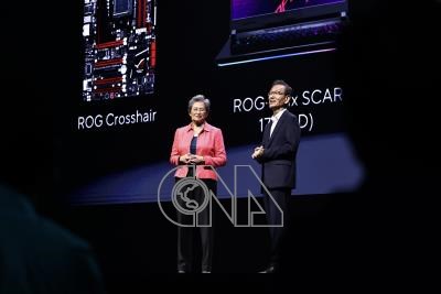 2024台北國際電腦展(COMPUTEX)4日起登場,3日由 超微(AMD)董事長暨執行長蘇姿丰(左)進行開幕主題演講。華碩董事長施崇棠(右)也現身替蘇姿丰站台,他表示,華碩全系列產品將採用超微第3代AMD Ryzen AI,並在多領域合作。