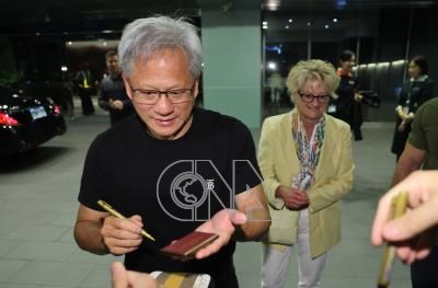 黃仁勳現身機場準備離台 依然親切為粉絲簽名