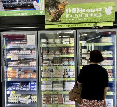 端午雞蛋買氣不佳,雞蛋產地價將再降新台幣3元,連鎖量販賣場業者家樂福13日表示,14日起平價洗選蛋10入價格47元至55元,調降5至8元;冷藏籠飼蛋與非籠飼持續特價,折扣區間介於85到9折。圖為民眾在高雄市前鎮區的家樂福內挑選非籠飼雞蛋。