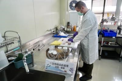 核能安全委員會輻射偵測中心在高雄的生物氚分析實驗室17日正式啟用。圖為「前處理室」作業情形。