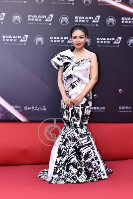 第35屆金曲獎星光紅毯29日傍晚熱鬧展開,歌手阿洛.卡力亭.巴奇辣今年入圍多項大獎,以黑白色系斜肩禮服盛裝亮相紅毯。