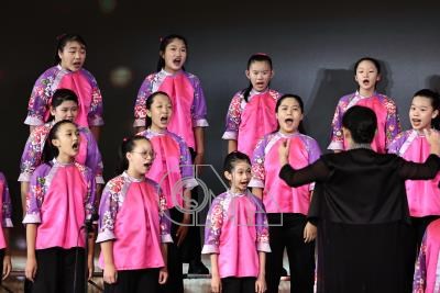 國立客家兒童合唱團1日應邀在台北漢來大飯店出席中央通訊社百年社慶暨改制28週年酒會,現場帶來多首歌曲,為與會者送上天籟之音。