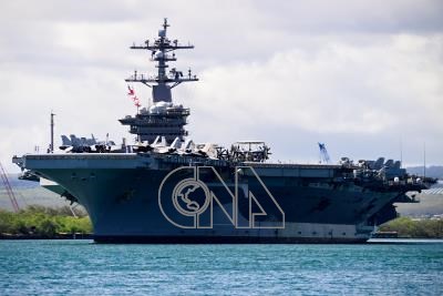 美國航空母艦卡爾文森號(USS Carl Vinson,CVN-70)8日駛出珍珠港,宣告2024年環太平洋軍演(RIMPAC)進入海上演訓階段。中央社特約記者Edward Bungubung檀香山攝 113年7月9日