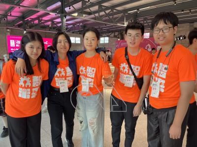 中興大學電機工程學系陳綺玲(左起)、中興大學電機工程學系林佩萱、廣東工業大學自動化學院王逸塵、台灣科技大學工業管理系楊弘寧、東莞台商子弟學校林俊廷等人組隊以「真人虛擬形象技術」奪一等獎。