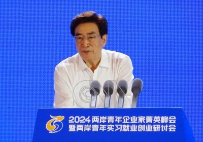 2024兩岸青年企業家菁英峰會暨兩岸青年實習就業創業研討會開幕式21日上午在昆山舉行,兩岸企業家峰會大陸方面理事長郭金龍致詞。