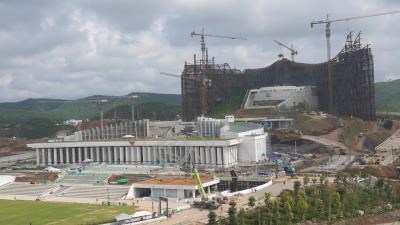 印尼新首都「政府中心」屬於工程的第一階段,占地約6600公頃,目前工程完成80%,工人把握最後施工時刻,力拚在8月遷都大限前完成建設。