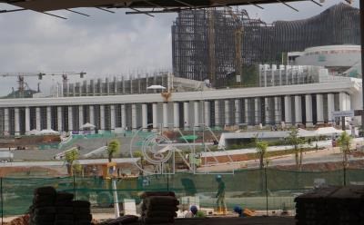 印尼新首都努山塔拉自2022年8月開始施工,建築工人在總統府前廣場持續趕工,力拚8月獨立日前完成第一階段工程。