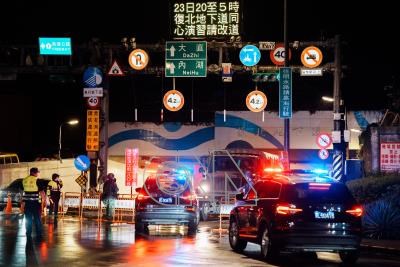 憲兵指揮部23日晚上10時至11時於台北市復興北路地下道實施阻絕演練,警方與憲兵共同交通管制,確保交通順暢。