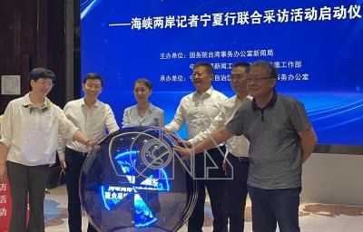 海峽兩岸記者聯合採訪25日在寧夏銀川舉行啟動儀式。左3為國台辦副主任吳璽,左5為國台辦新聞局長陳斌華。