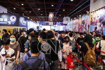 2024第23屆漫畫博覽會25日因颱風凱米影響而取消活動,26日在台北世貿1館登場,有漫迷擔憂搶不到商品,首日反而湧現「報復性」消費人潮,許多民眾排隊搶購商品。