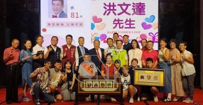 澎湖縣政府3日舉辦模範父親表揚大會,共有20人獲得表揚,其中觀光署澎管處長洪志光81歲的父親洪文達(前左4)也獲選,許多親友都到場祝福。中央社 113年8月3日