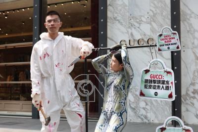 動團上演行動劇 抗議Gucci母公司虐待蟒蛇(1)