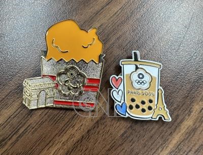中華奧會在2024巴黎奧運推出珍奶徽章(右)相當搶手,巴黎帕運如今也即將展開,體育署趁勢推出用台灣經典小吃「雞排」結合凱旋門的徽章(左),盼再掀熱潮。