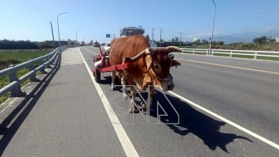 台東觀光明星富岡黃牛個性溫和、愛乾淨,每天工作不超過4小時,帥氣的走在台11線富岡路段上,經常吸引遊客拍照。