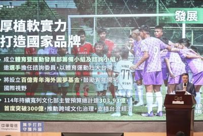 新政府上任第101天,行動創新AI內閣執政101記者會28日在行政院舉行,院長卓榮泰說明未來政策方向,並預告體育暨運動發展部籌備小組及諮詢小組成立,將邀請選手擔任諮詢委員,以體育運動壯大台灣。