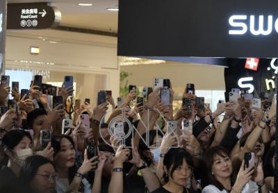 韓國男星池昌旭29日下午現身台北101為瑞士知名精品錶品牌代言,現場聚集大批粉絲,紛紛高舉手機搶拍偶像身影。中央社實習記者林意芸攝 113年8月29日