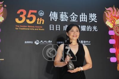 第35屆傳藝金曲獎31日晚間在台灣戲曲中心隆重舉行頒獎典禮,作曲家顏名秀(圖)以「孤塵」獲得最佳作曲獎。