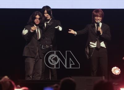 「2024 TRENDY TAIPEI潮台北–JAM JAM ASIA」城市音樂節7日熱鬧展開,首日特邀韓國雙人組合ASMRZ成員TANAKA(右)、NEEDMORECASH(左2)合體來台首演,有粉絲特地穿起西裝,與兩人一起以日本執事風演出夯曲「晚安大小姐」舞蹈。