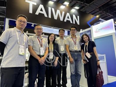 台灣區電機電子工業同業公會組團赴印度參展,盼助台廠爭取更多訂單。圖為電電公會國際業務室代表郭嘉茹(右1)與貿協經理翁培芳(左3)前往台廠攤位參觀。