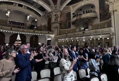台北市立國樂團16日晚間在捷克布拉格演出結束,觀眾紛紛起身給予熱烈掌聲。