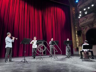 台北市立國樂團17日在捷克拉貝河畔烏斯季舉行音樂會,透過嗩吶表演融入爵士元素的「Crazy Suona組曲」。