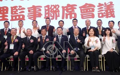 中華民國工業區廠商聯合總會「第9屆第14次理監事聯席會議」25日在台北漢來大飯店舉行,行政院長卓榮泰(前右4)由勞動部長何佩珊(前右2)、行政院祕書長龔明鑫(前右3)陪同與理監事合影。
