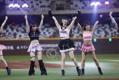 中華職棒29日在台北大巨蛋進行例行賽,味全龍啦啦隊Dragon Beauties小龍女練習生賽前熱場表演。