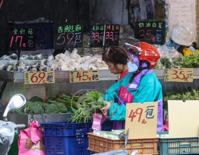 颱風山陀兒來襲,全台3日再度停班停課,不少民眾3日上午來到新北市新店區傳統市場買菜,準備度過颱風天。