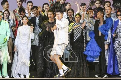 國慶晚會時隔8年重返台北舉行,5日晚間在台北大巨蛋盛大展開,呈現多元表演節目,歌手王ADEN(前中)也應邀登台獻唱。