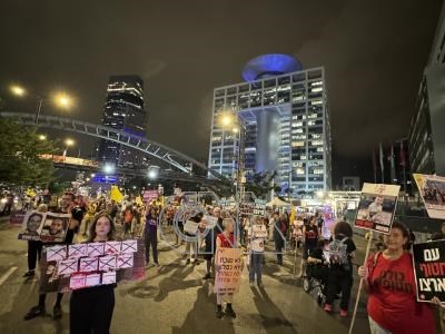 以色列國防部出入口前 群眾為被綁架人質抗爭
