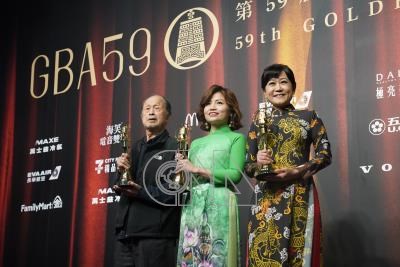 第59屆廣播金鐘獎頒獎典禮12日晚間登場,寶島客家廣播電台節目「神曲越南」榮獲類型音樂節目獎,主持人黎清映娟(中)、宋菁玲(右)及寶島客家電台副董事長黃永達(左)開心合影。