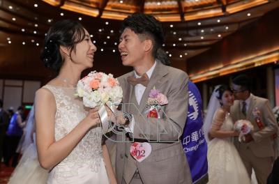 中華電信113年員眷集團婚禮13日在台北圓山大飯店舉行,新人們互許終身,接受各界祝福,現場洋溢甜蜜幸福氛圍。