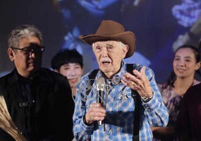 紙風車368兒童藝術工程第3輪「永續啟航」將開跑,人稱「譚爸爸」的95歲台東基督教醫院創辦人譚維義(前右),17日應邀現身劇團台北排練現場並致詞。