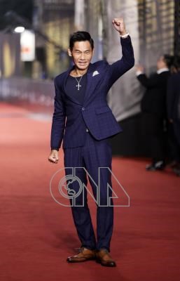 第59屆金鐘獎戲劇類頒獎典禮晚間將登場,19日傍晚北流場外星光大道率先展開,演員夏靖庭(圖)將競逐迷你劇集(電視電影)男主角獎,在紅毯上開心振臂留影。