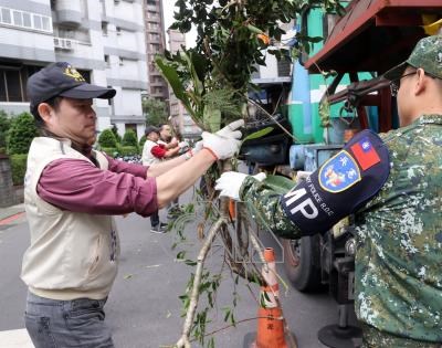颱風康芮日前挾帶強風豪雨襲台,造成台北市多處路樹倒塌,市府盼以最快速度復原市容,3日進行環境整理工作,國軍也協助支援。