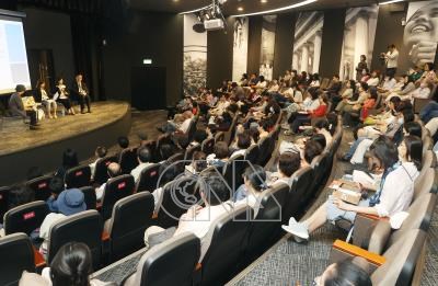 中央社記者郭日曉攝 113年11月3日###0002翻譯家林水福(台上右1)從教職退休以後開始翻譯日本經典文學「源氏物語」,歷時近4年,完成90萬字新譯本,3日在集思台大會議中心舉行新書發表會,現場幾乎座無虛席。 中央社記者郭日曉攝 113年11月3日0004台北市文化局長蔡詩萍###